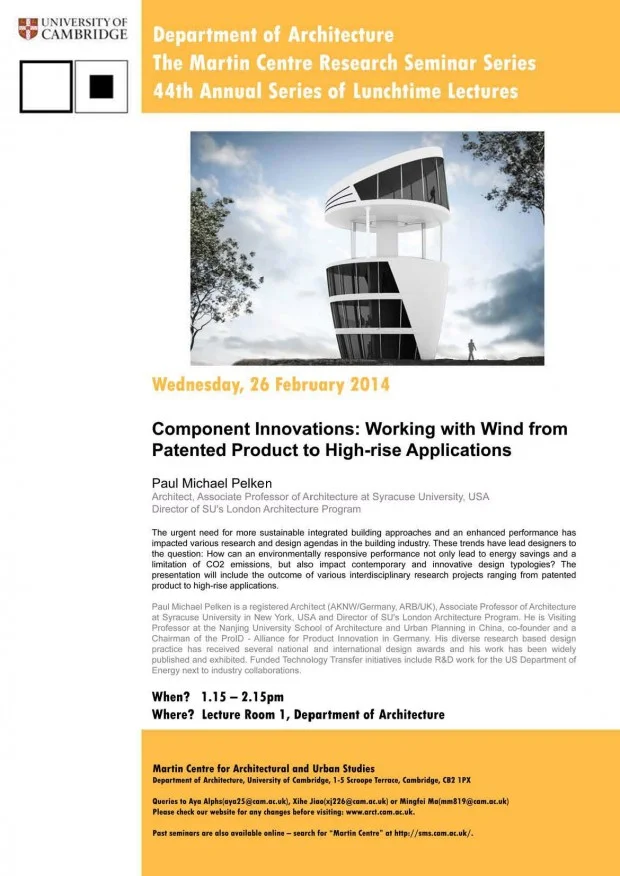 Paul Michael Pelken presented our work at Department of Architecture, at University of Cambridge, as part of The Martin Centre Research Seminar Series, 44th Annual Series of Lunchtime Lectures on 26 February, 2014.